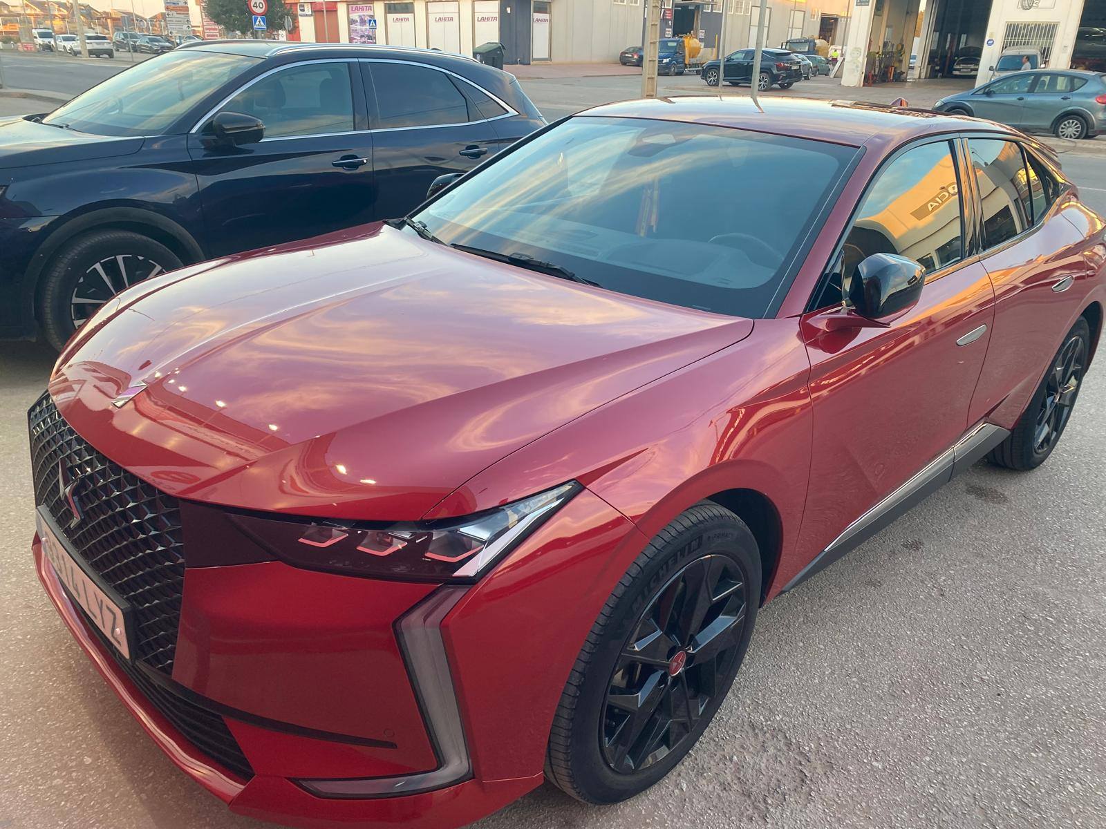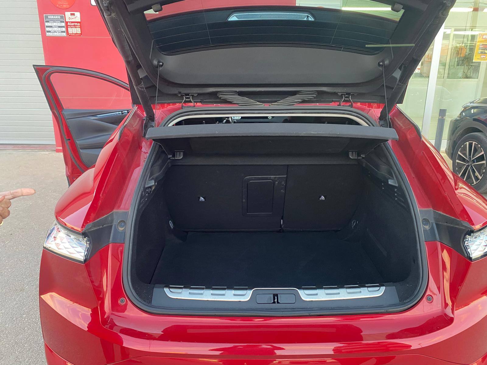 Compacto premium de 5 puertas con silueta fastback elevada (casi crossover), diseño sofisticado y distintivo (faros Matrix LED, detalles DS Wings y Black Pack en negro brillante). El acabado Performance Line añade estética deportiva: llantas de 19" Minneapolis en negro, emblemas específicos, interior con costuras rojas, pedales de aluminio y volante deportivo.